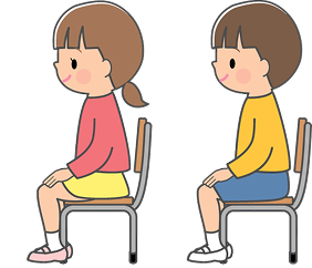 小学校の授業を想定して、45分着席する 練習を行います。