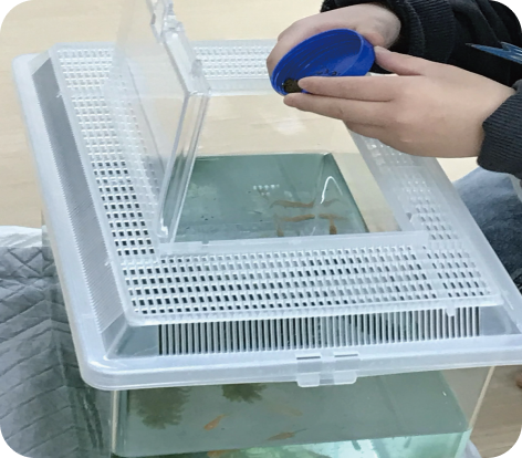 ・メダカにえさをあげる